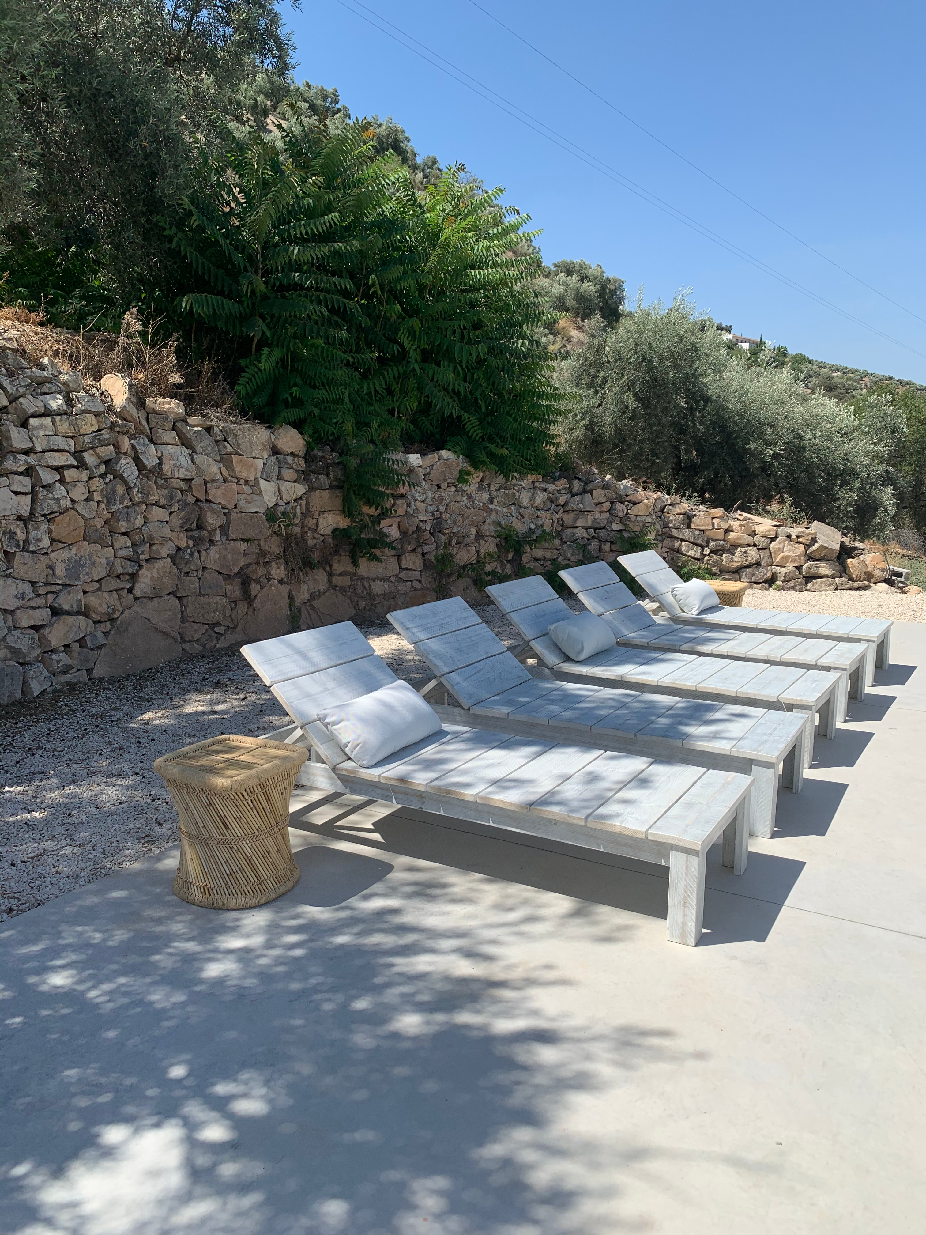 Outdoor: Private pool (heated optional) · Outdoor kitchen + plancha · Covered terrace · Sun loungers + umbrellas · Butterfly chairs · Parking