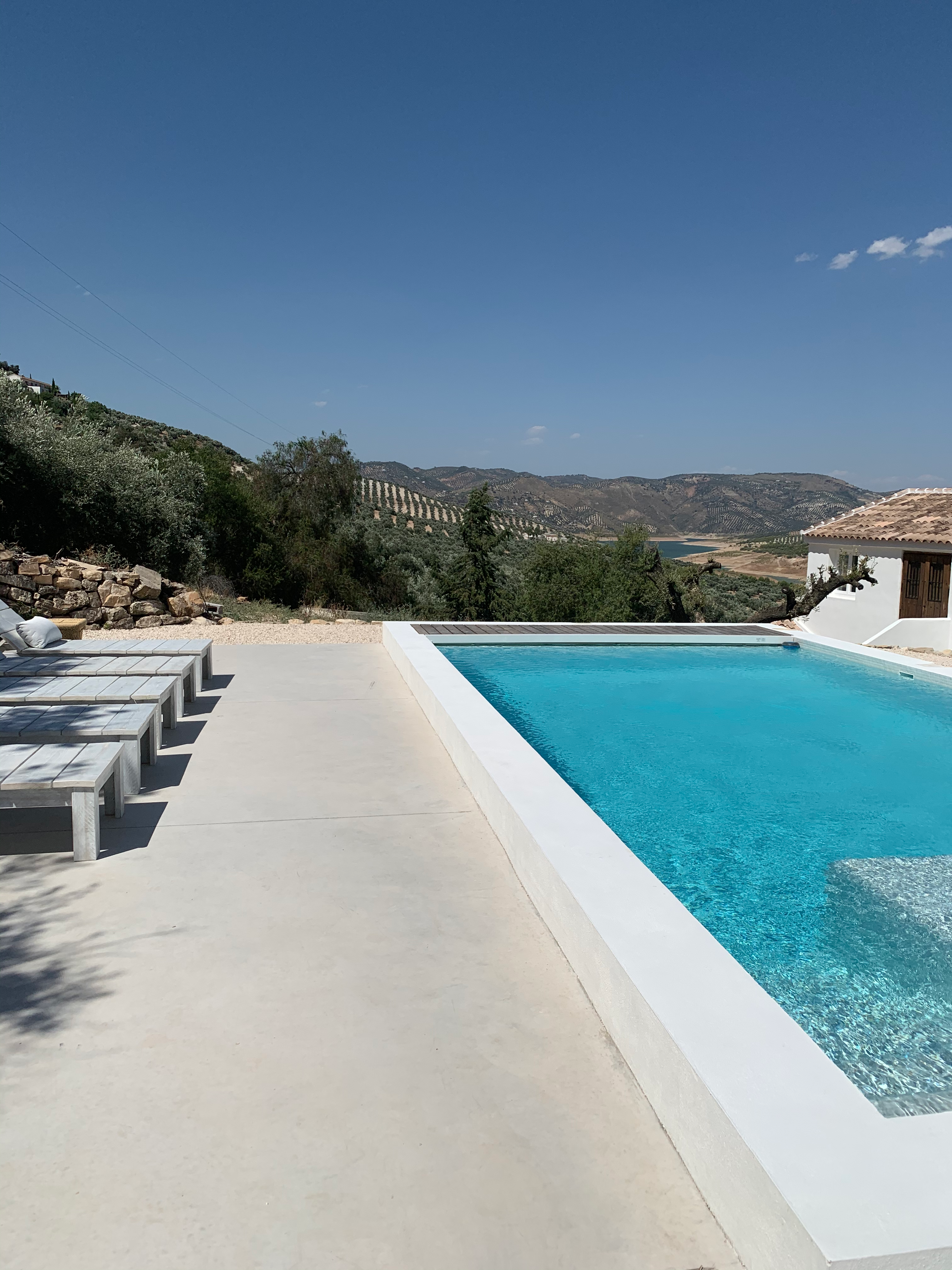 A beautifully renovated designer home amid the olive groves of Iznájar, with sweeping views over the largest lake in Andalusia — made for families and groups who want style, space, and sunshine.