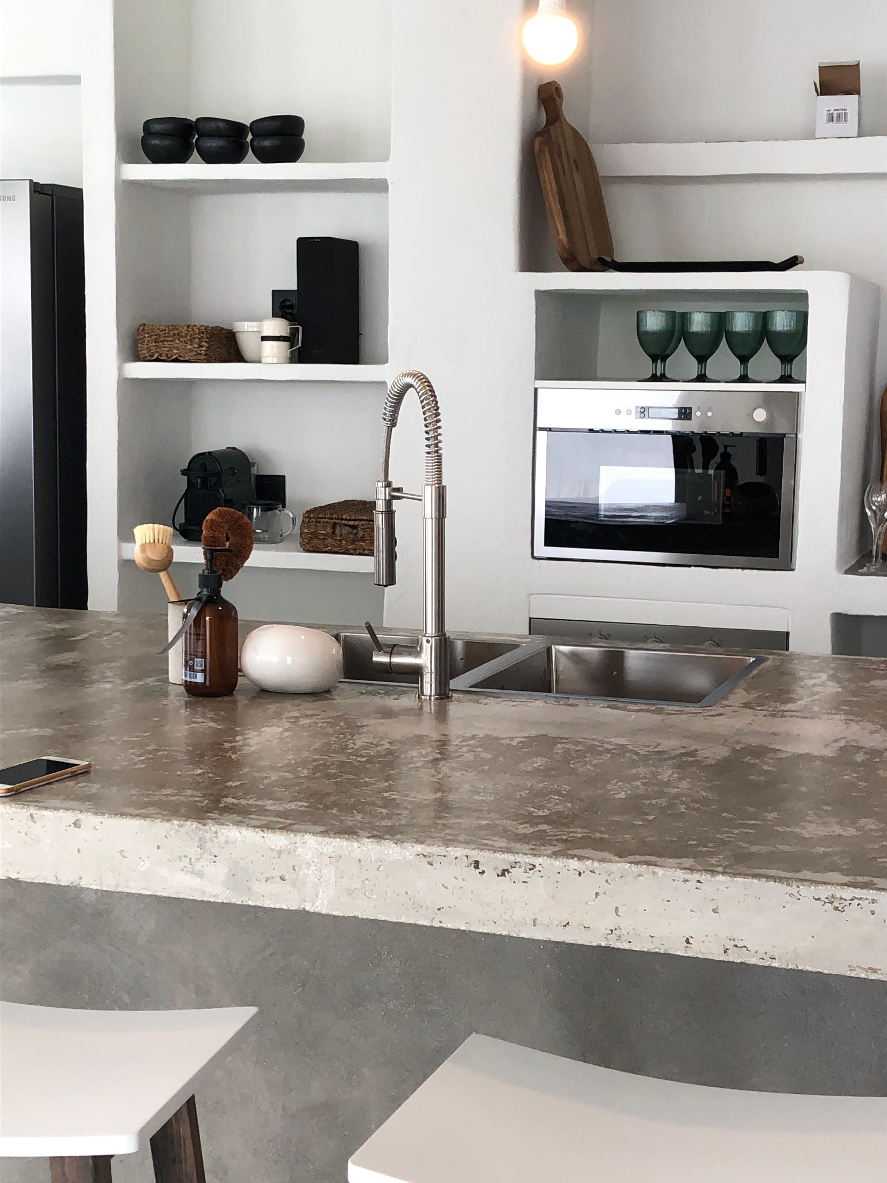 Kitchen: Induction cooktop · Oven · American fridge + freezer · Nespresso · Dishwasher · Microwave · Blender · Grill