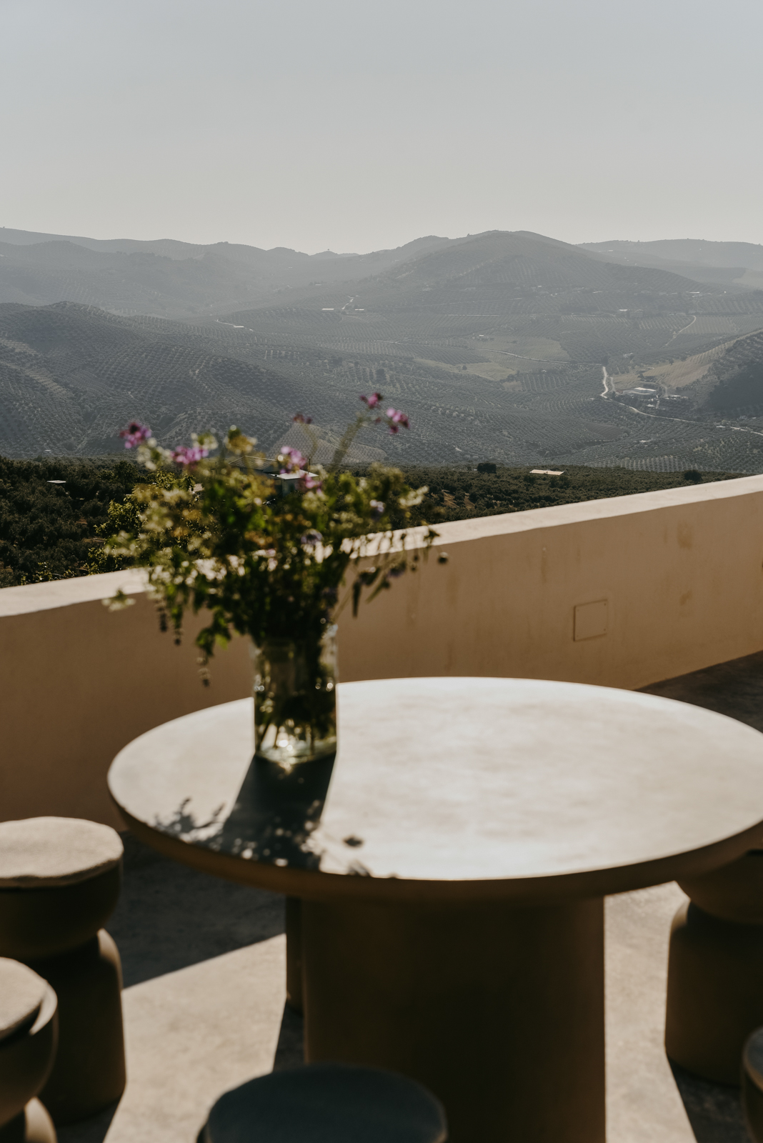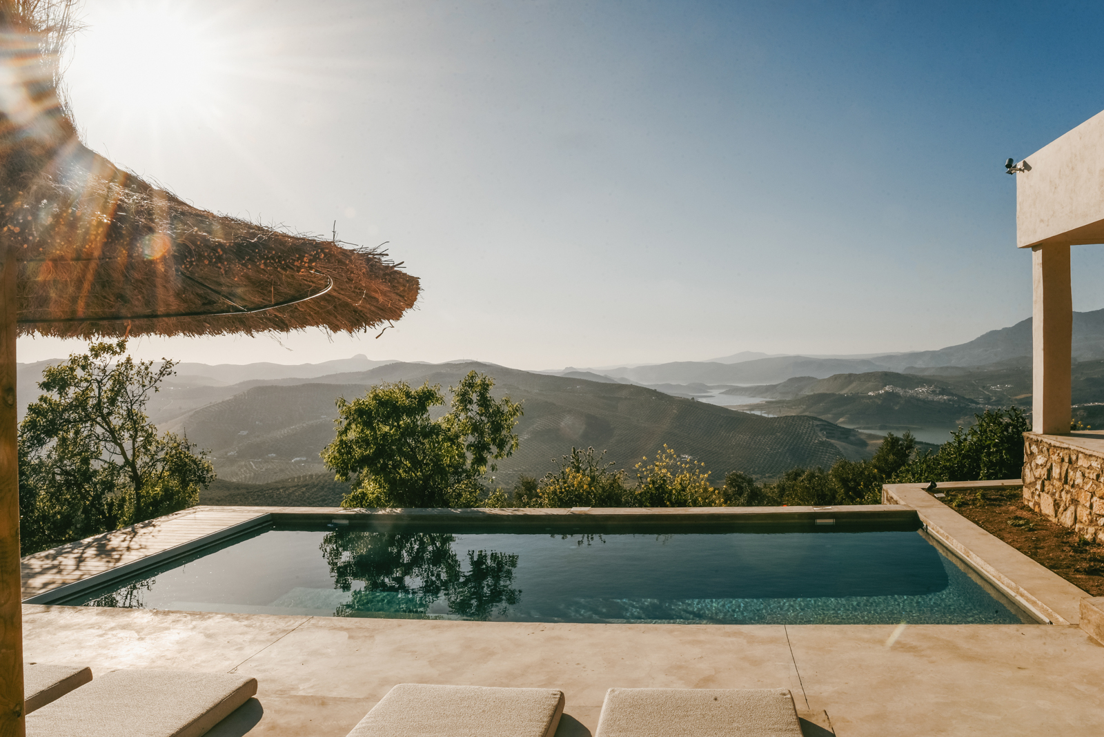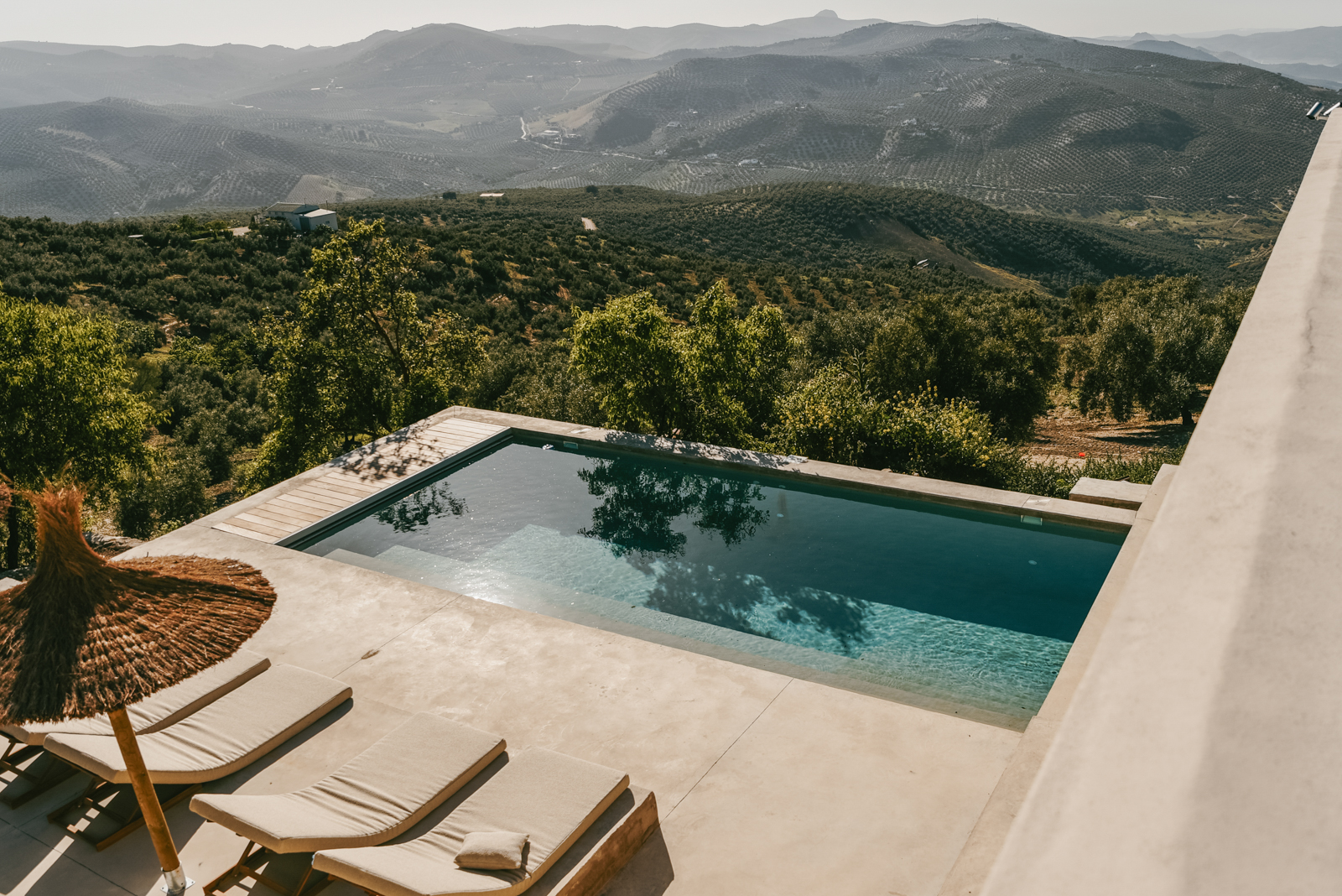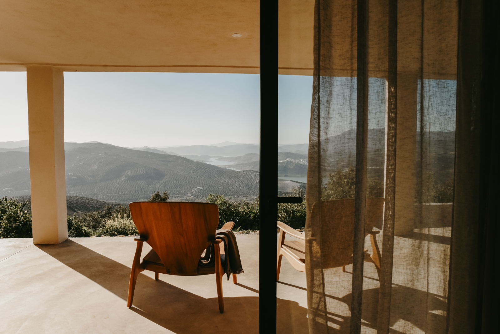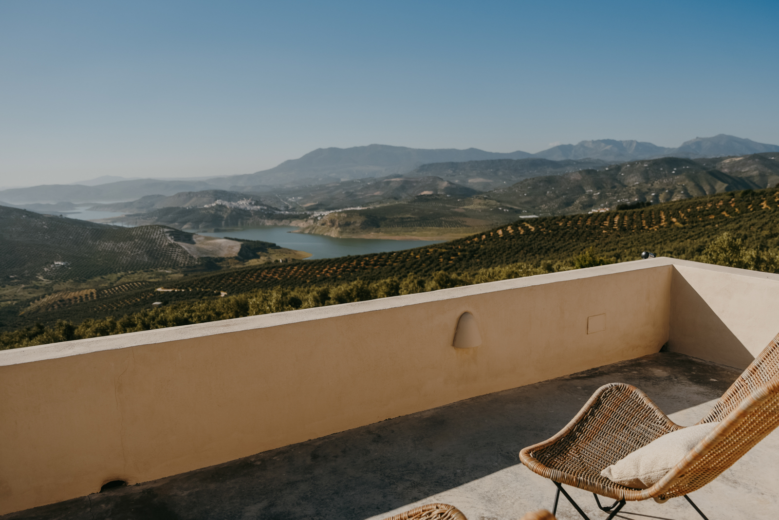 A serene hilltop retreat among the olive groves of Iznájar, designed with natural materials and refined simplicity — where panoramic views over Lake Iznájar set the tone for slowing down.