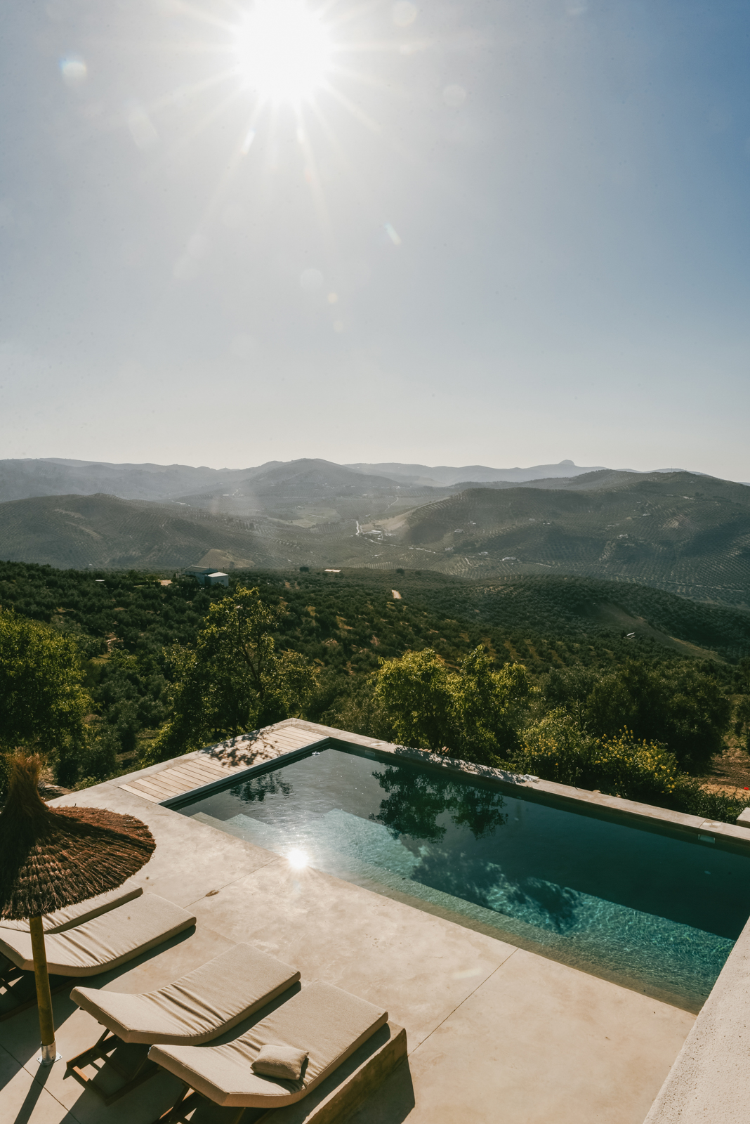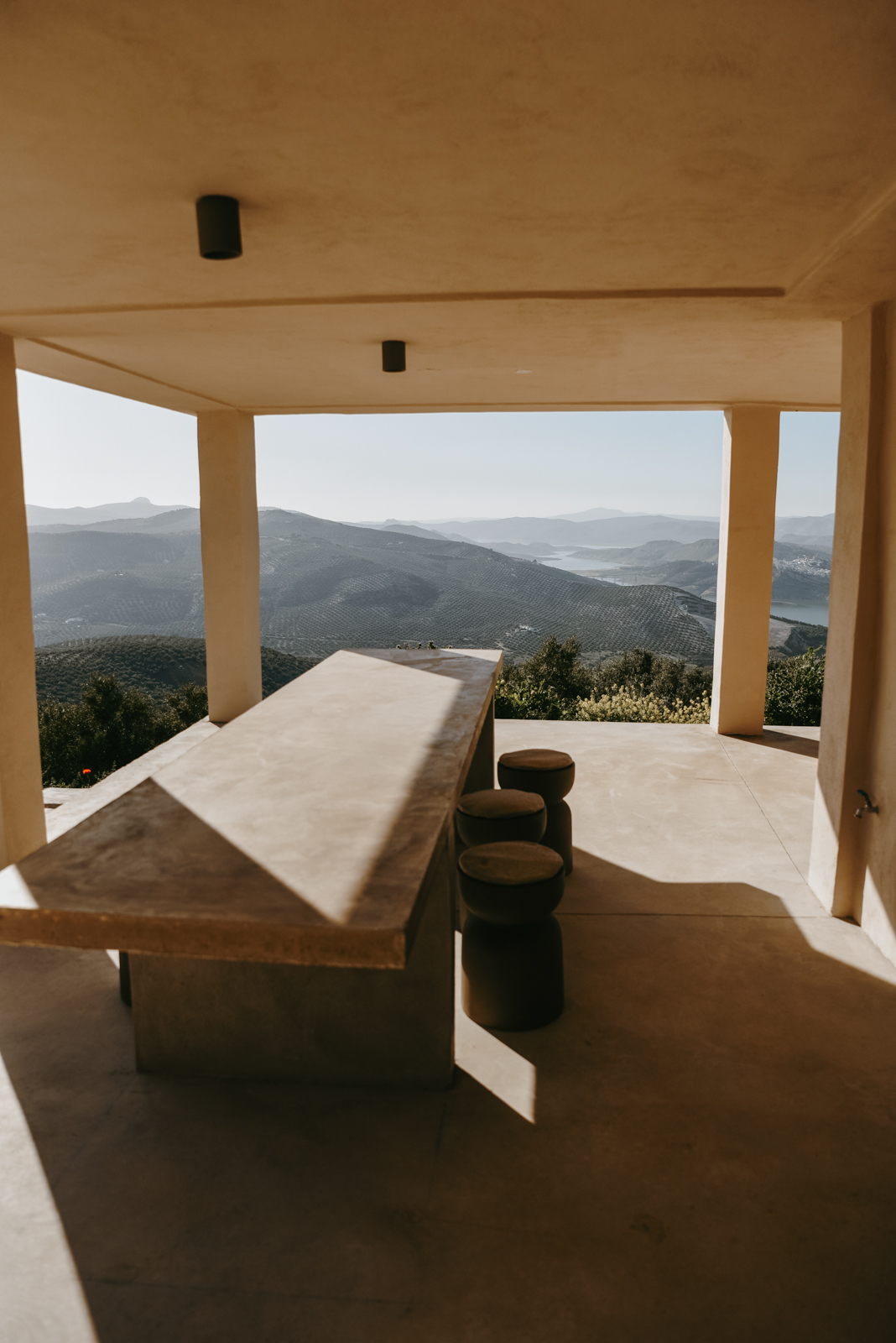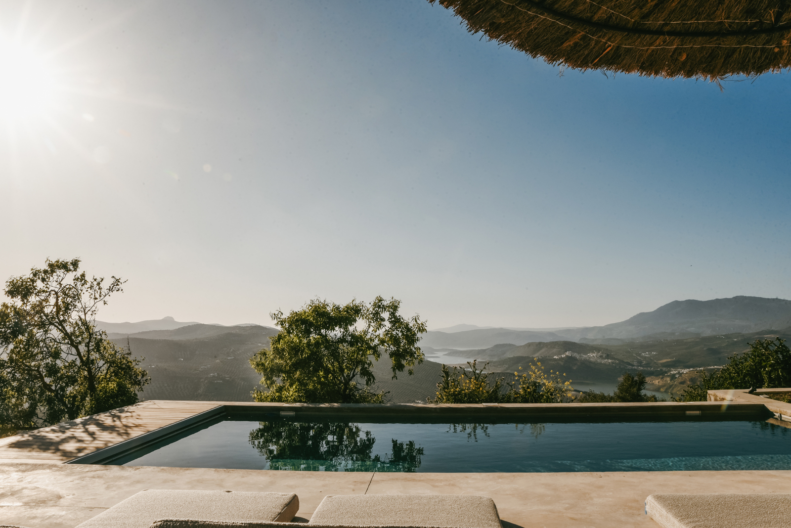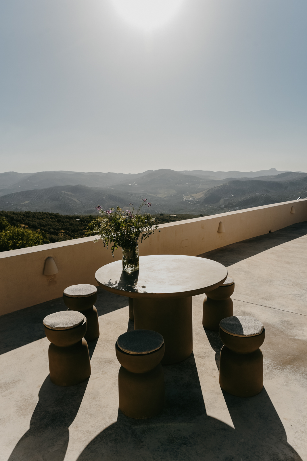 A serene hilltop retreat among the olive groves of Iznájar, designed with natural materials and refined simplicity — where panoramic views over Lake Iznájar set the tone for slowing down.