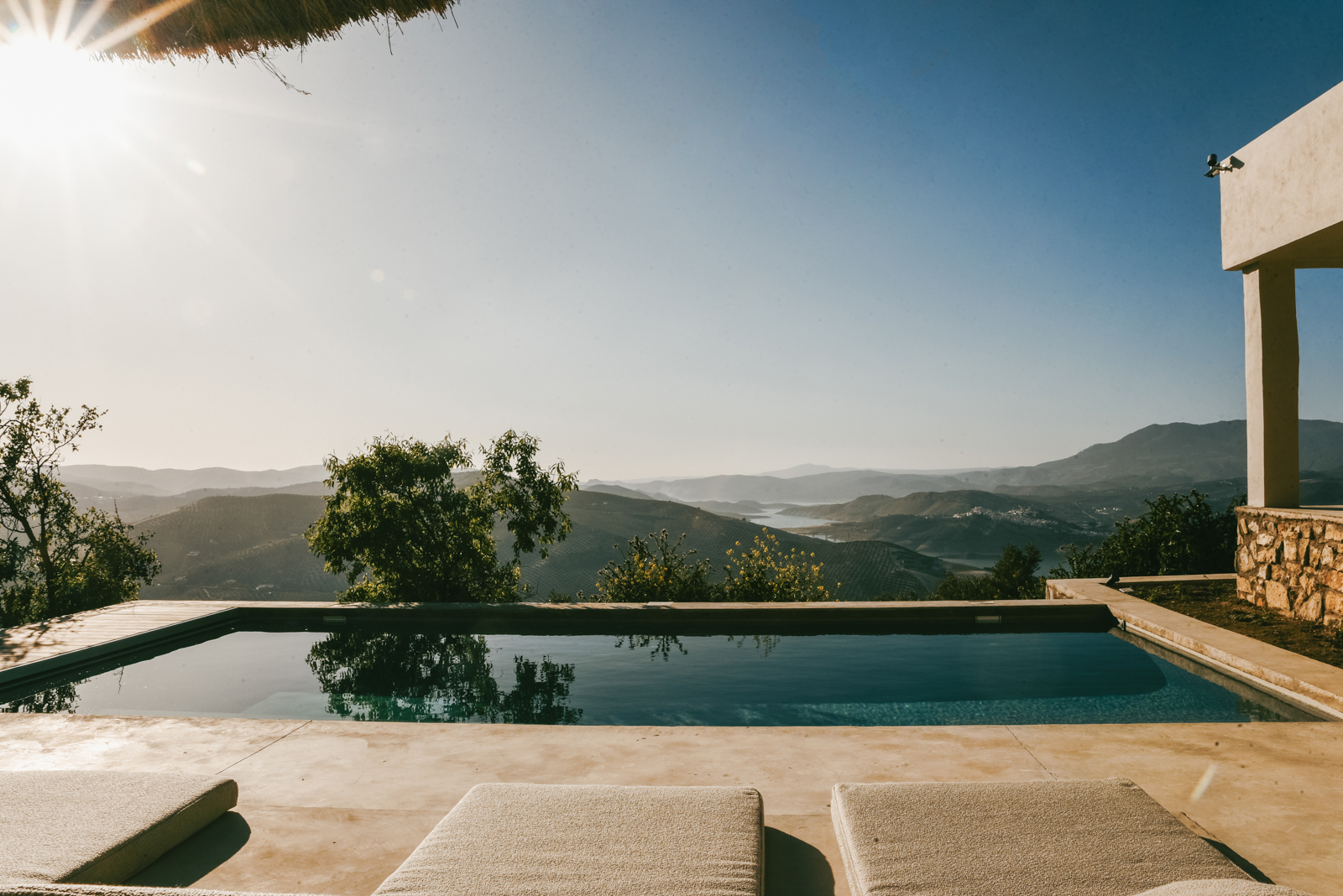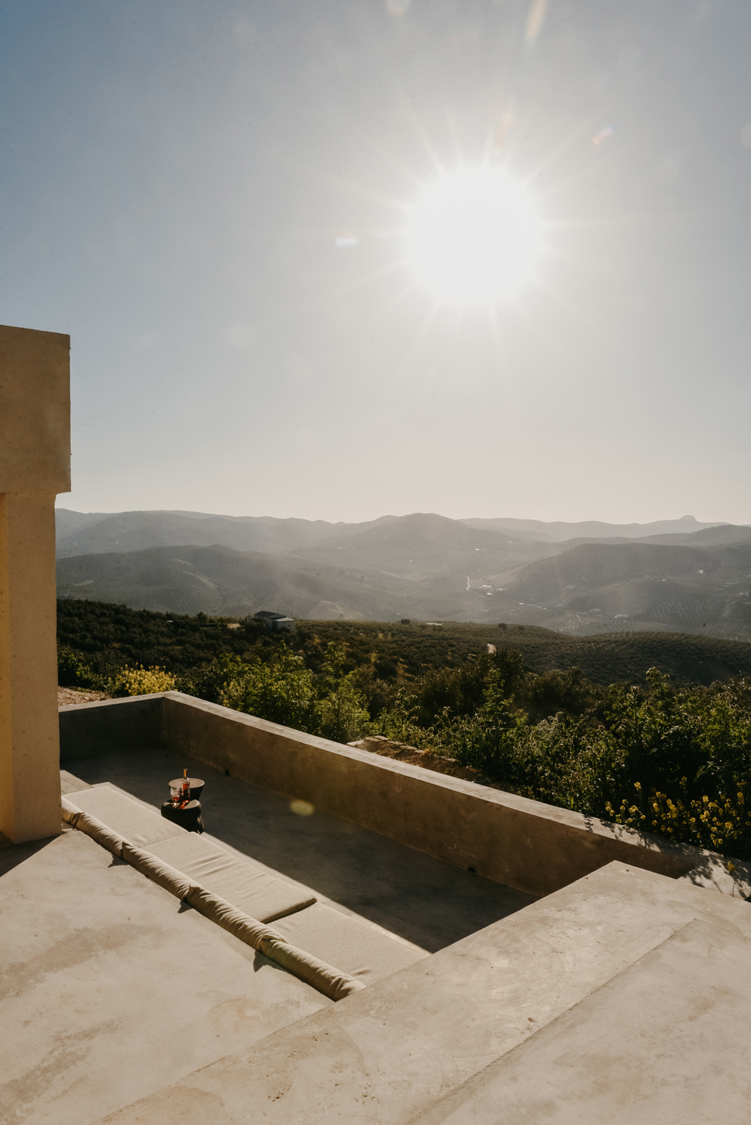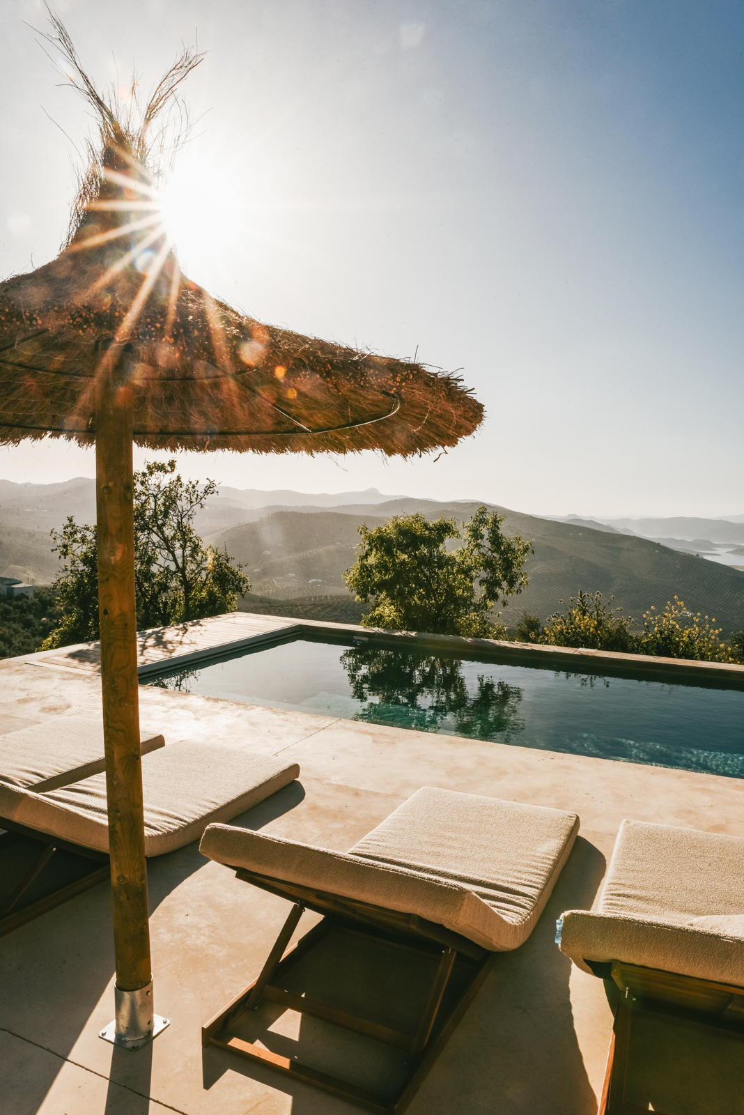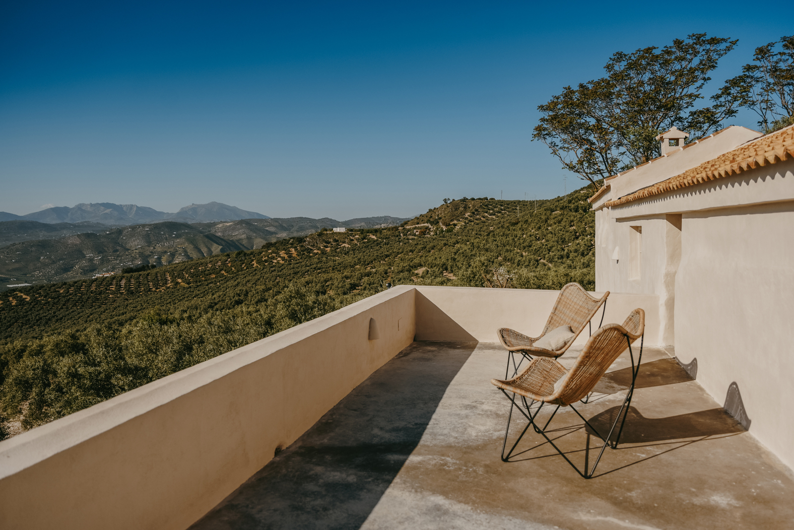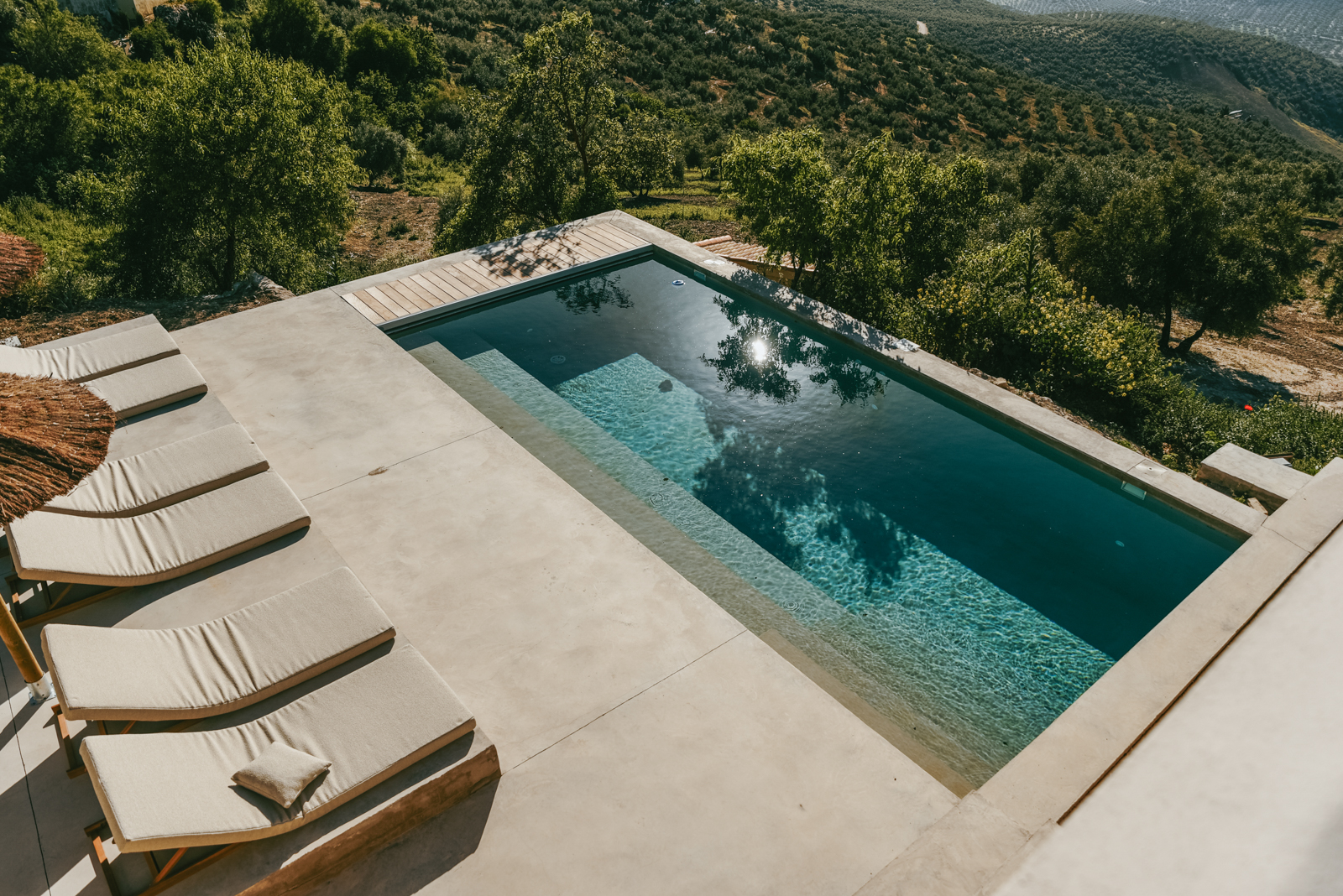 A serene hilltop retreat among the olive groves of Iznájar, designed with natural materials and refined simplicity — where panoramic views over Lake Iznájar set the tone for slowing down.