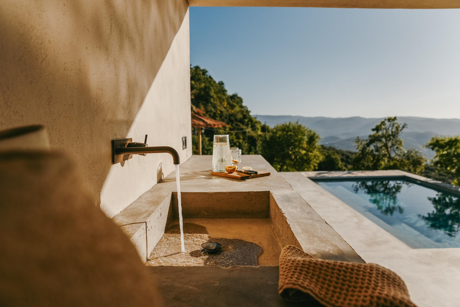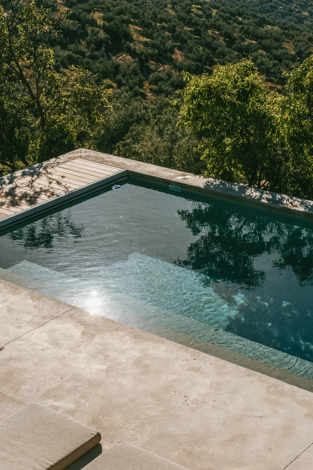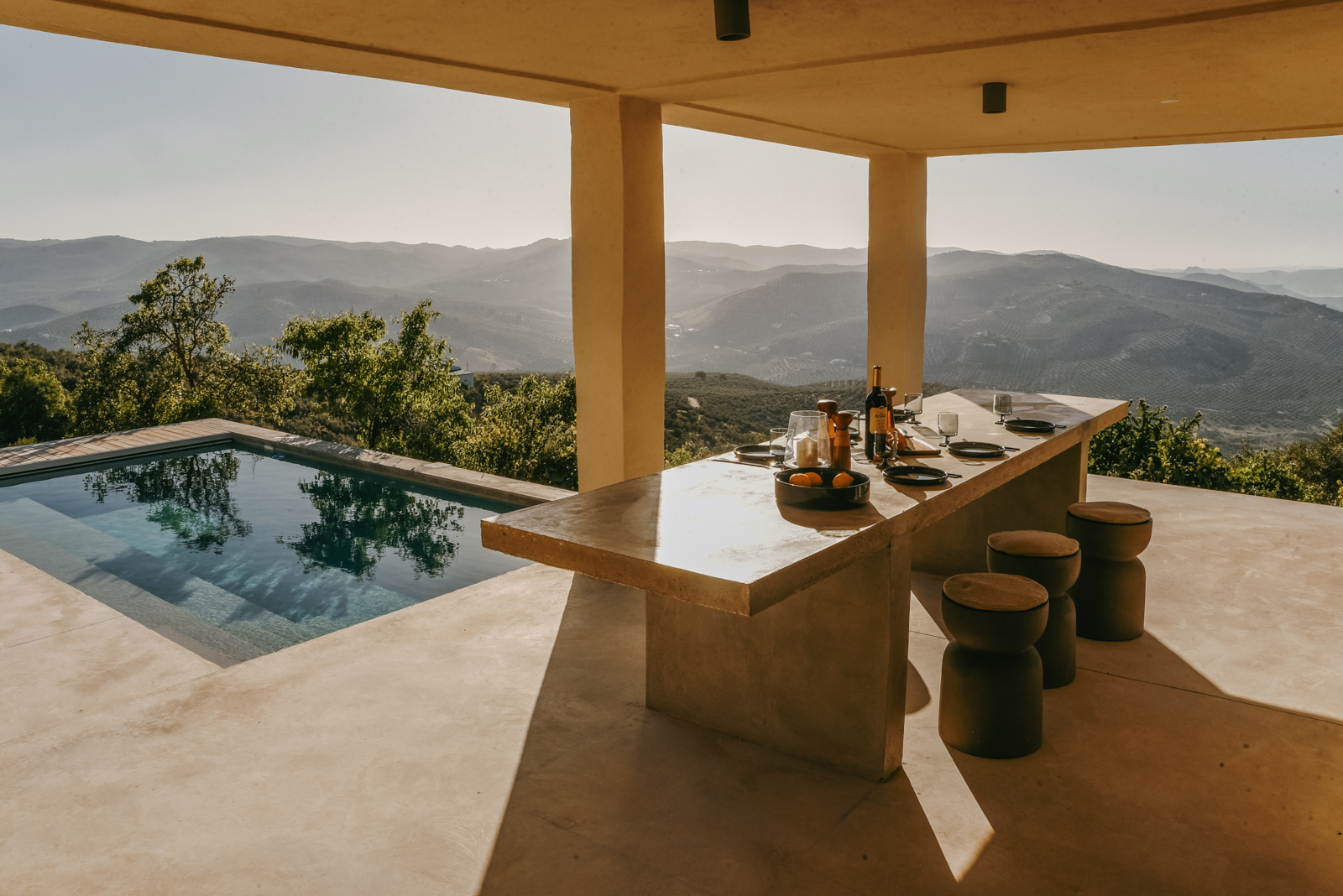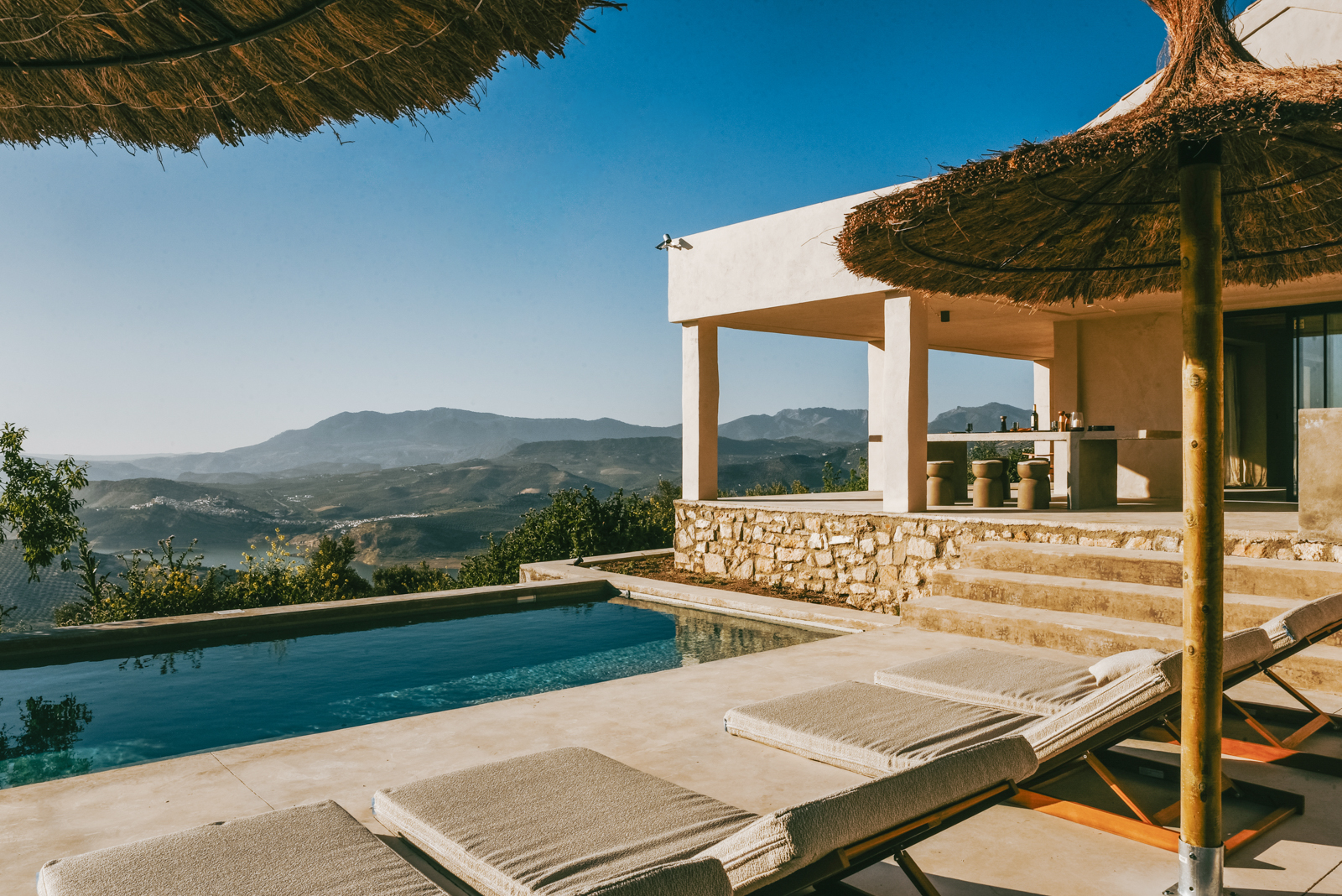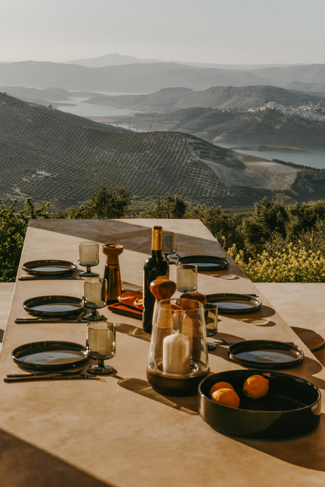 A serene hilltop retreat among the olive groves of Iznájar, designed with natural materials and refined simplicity — where panoramic views over Lake Iznájar set the tone for slowing down.