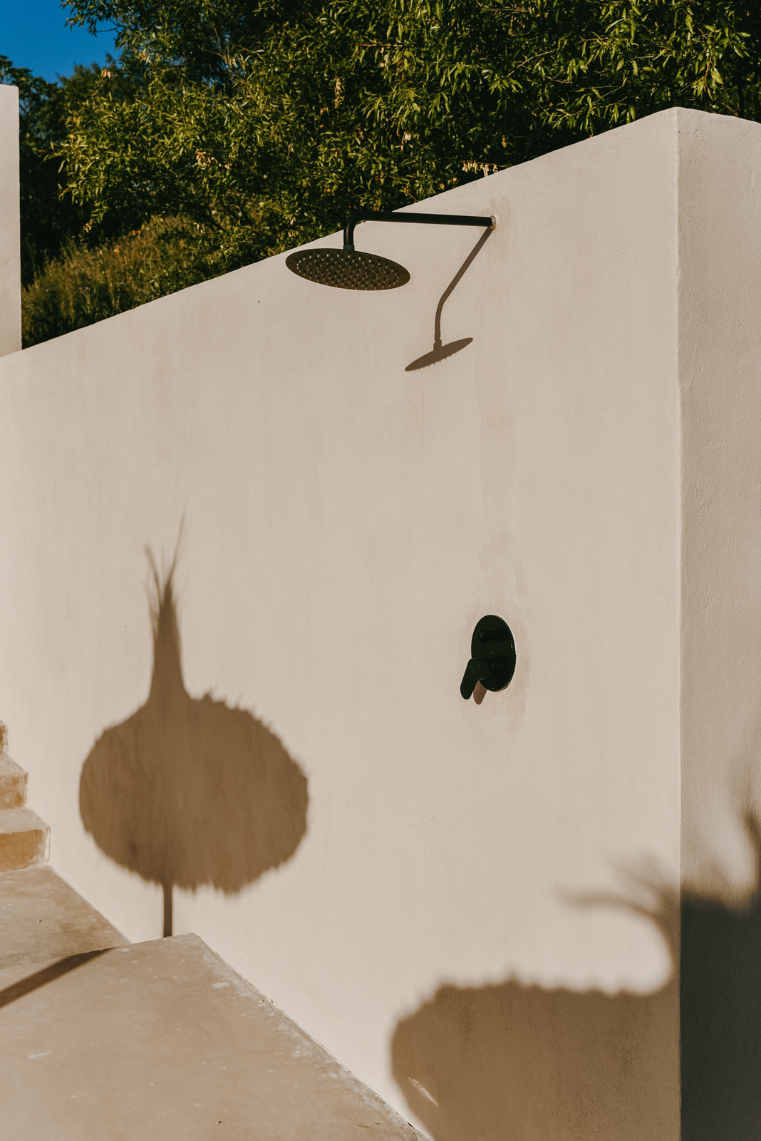 Private pool — 4×8m pool with sunbeds, parasols, and outdoor shower